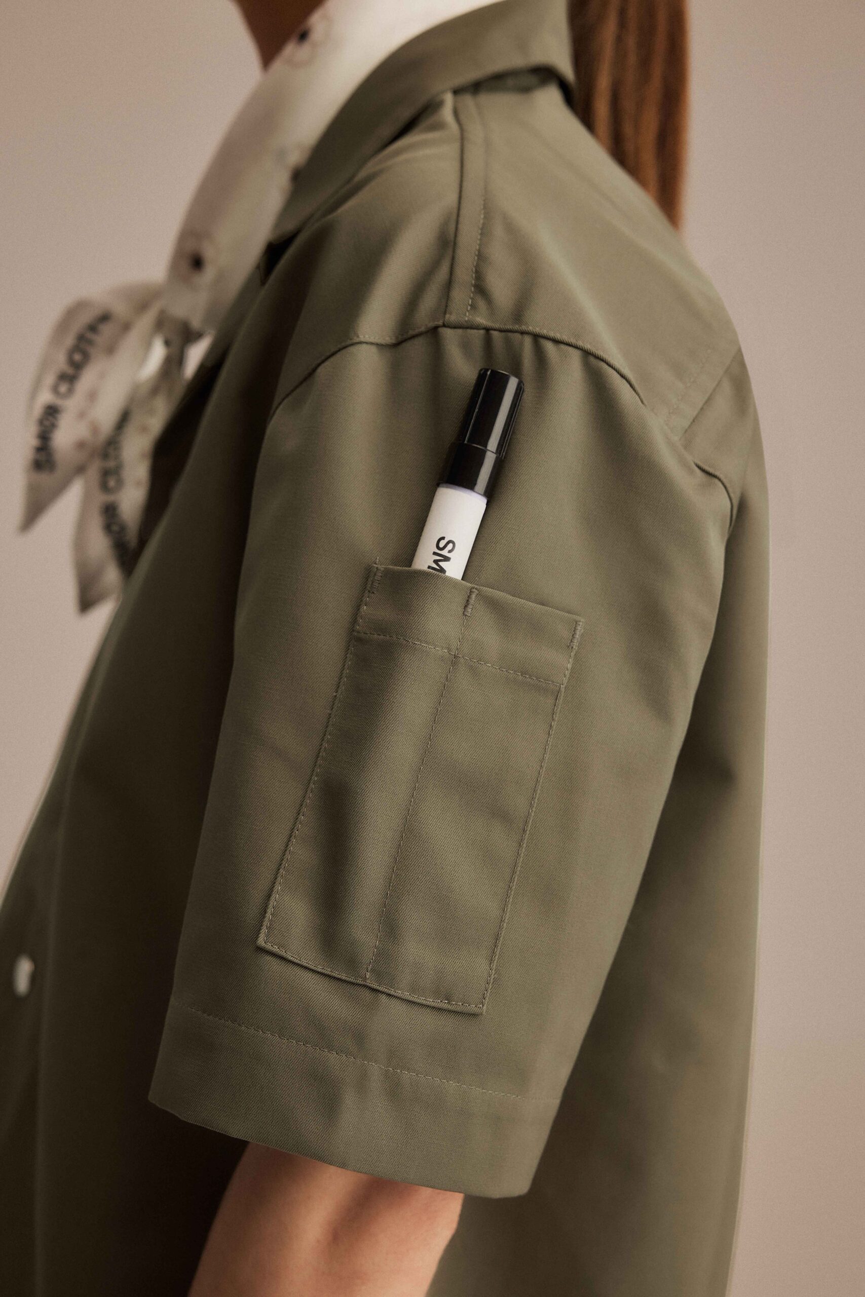 Short sleeved chef’s jacket with camp collar that protects neck chafing from apron. Closes with YKK snap-buttons and equipped with a pen-pocket at left sleeve. Fabric produced in Frosinone, Italy by Klopman international SRL and garment made in Guimarães, Portugal by Confecções Mafrex LDA.