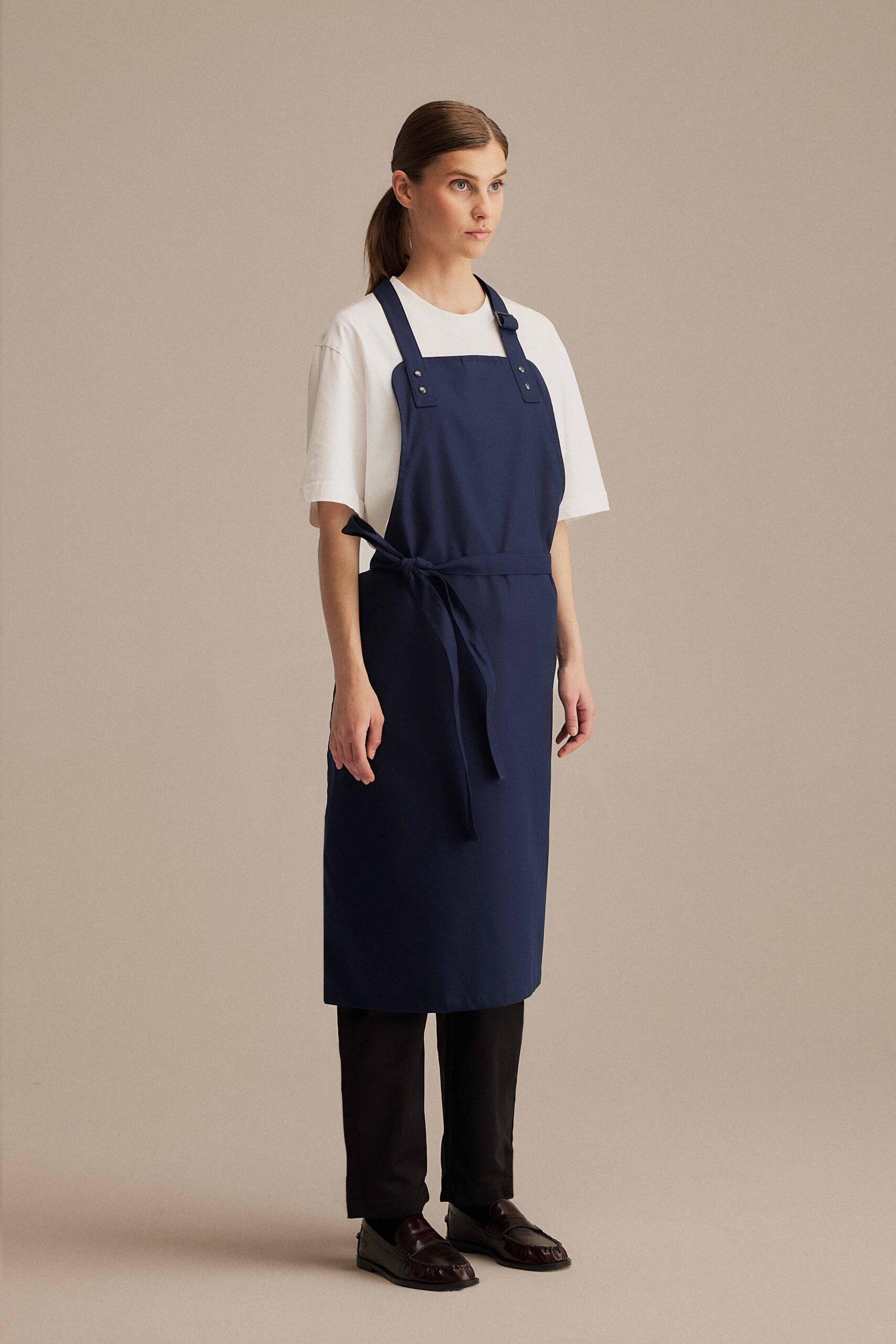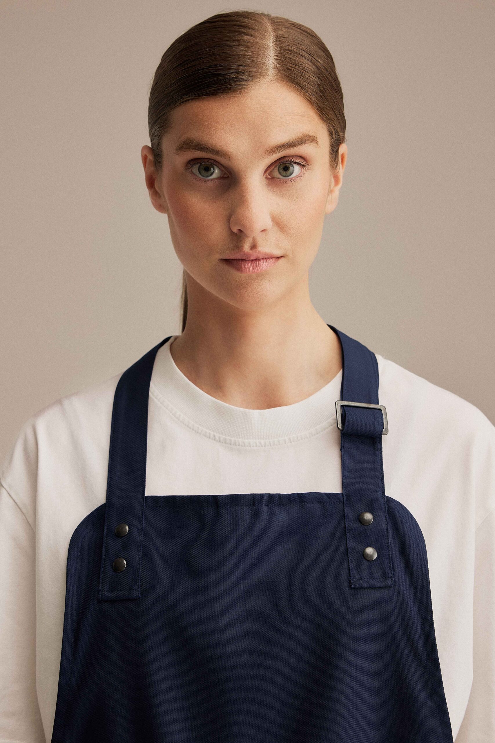 Canvas apron with adjustable neck & waist tie in shell fabric. Fabric produced in Frosinone, Italy by Klopman international SRL and garment made in Guimarães, Portugal by Confecções Mafrex LDA.